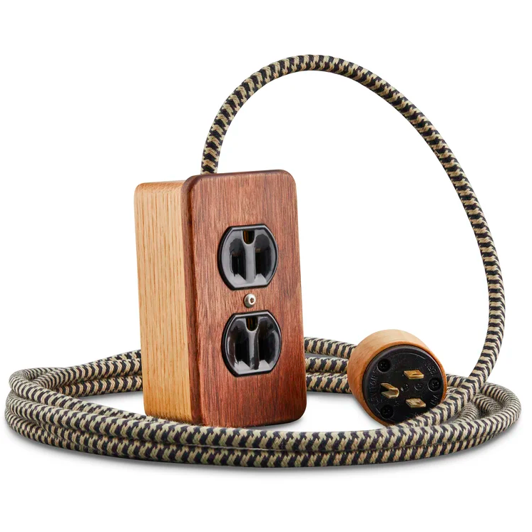 Various hardwoods and a ten-foot woven cord in black & white or yellow